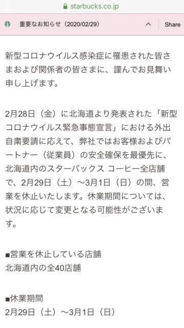 新型コロナウイルス感染拡大を防ぐため各企業が対策を打ち出し始めた。2020年2月29日、スターバックスを訪れた。