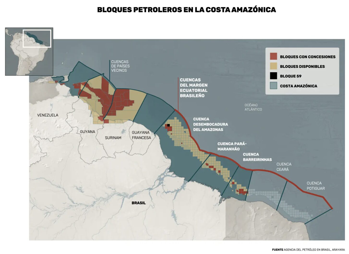 この報道プロジェクトの分析によれば、ブラジルの赤道縁辺部はすでに石油ブロックによって完全に区画化されているが、未だ探査されていない状態にある。また、アマゾニアにおける沖合(オフショア)の石油ブロックの92%は、依然として調査中もしくは入札段階にある。