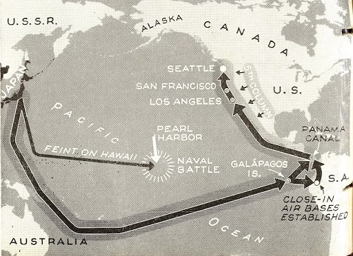 1940年に作成された一枚の図は、第二次世界大戦において、米国の安全保障ルート上でガラパゴス諸島が果たした戦略的役割を示している。出典は米国海軍(Armada de EE.UU.)によるものである。当該文書では、当時ドイツおよび日本に対抗するために採用された地政学的・戦略的な枠組みが、現在においてもアジアおよびユーラシアの巨大国家に対抗する上で再利用可能であるという論理が展開されている。