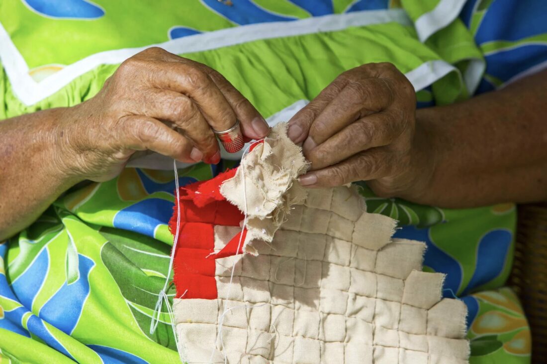 「ティファイファイ」、すなわちタヒチ語で「縫い合わせた毛布」を意味するこの工芸品は、フランス領ポリネシアにおける真の文化的象徴と言える。市場や店舗、工芸展示会では、これらの布地が目に留まらないことはほとんどない。そして、多くの場合、その場で自然界からインスピレーションを得た大判の布を手に入れることができる。花や葉、地元の果物など、ひとつひとつの「ティファイファイ」は、タヒチとその島々の風景や文化をそのまま切り取ったかのような存在である。大判の布には色鮮やかなアップリケが施され、地域の動植物や島の暮らしから着想を得た独特の模様が描かれている。この布一枚一枚が、ポリネシアの自然や文化を反映する芸術作品であり、単なる布製品を超えた価値を持つ。ポリネシアの職人たちは、鮮やかで多様な模様の布地を用い、芸術作品と呼ぶにふさわしいテキスタイルを生み出している。
