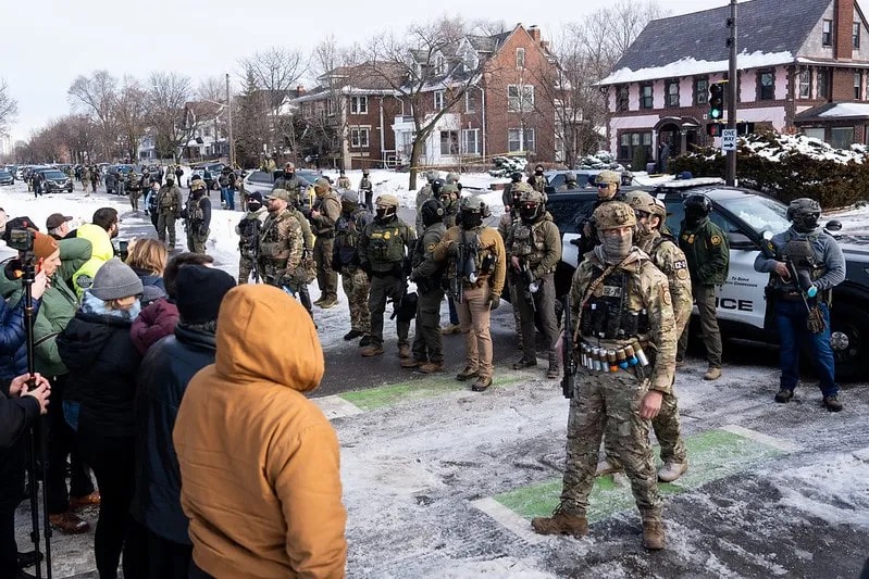 このようなやり方は、占領が存在するあらゆる場所で見られるものであり、武装したエージェントが免責の状態で行動し、法的保護や政治的権力をほとんど持たない人々に対して運用されている状況そのものである。また、街路にあふれる準軍事組織だけでなく、同じ占領のためのデジタルシステムも米国内に流入している。