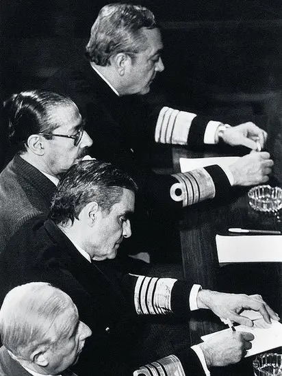 • オマール・グラフィニャ(Omar Graffigna)、アルトゥーロ・ラミ・ドーゾ(Arturo Lami Dozo)、レオポルド・ガルティエリ(Leopoldo Galtieri)、ホルヘ・アナヤ(Jorge Anaya):無罪