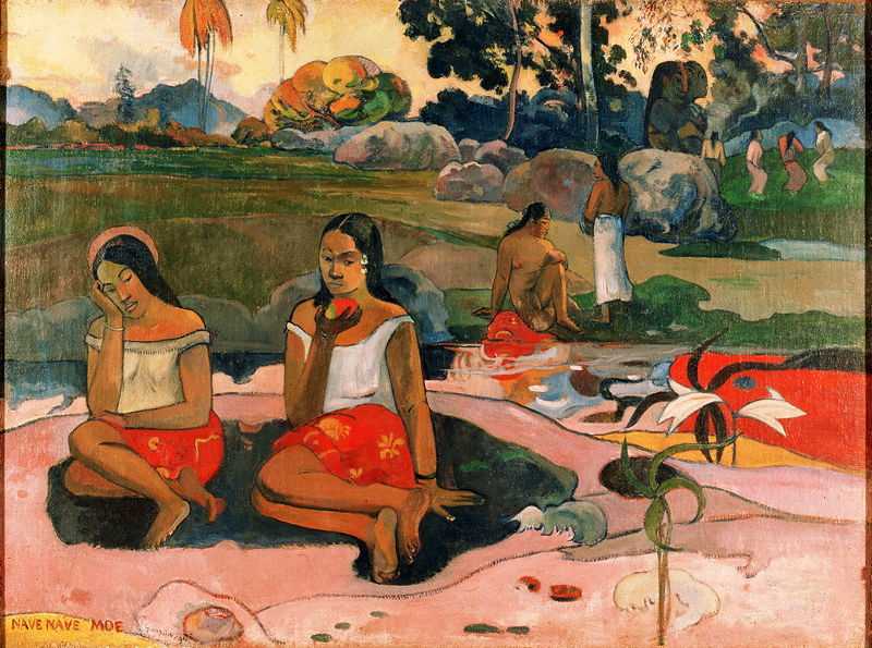 タヒチはゴーギャンに色彩を異なる目で見る自由を与えた。灰色の冬が長く続くヨーロッパの季節の空は消え去り、『説教の後の幻(Vision After the Sermon)』の赤い野原は、タヒチの目もくらむような蛍光色のパレットに置き換わった。光はすべてを照らし、色彩は単純で荘厳であった。ゴーギャンは『ノア・ノア』に「暴力的で純粋な色彩を持つ風景は、私を眩惑し、目を奪った」と記している。青い海に浮かぶオレンジの帆の動き、紫色の土に対する黄色い葉の効果、小川や海岸で泳ぐ島民の黄金色の姿に魅了され、タヒチで色彩画家としての潜在能力を実感したのである。