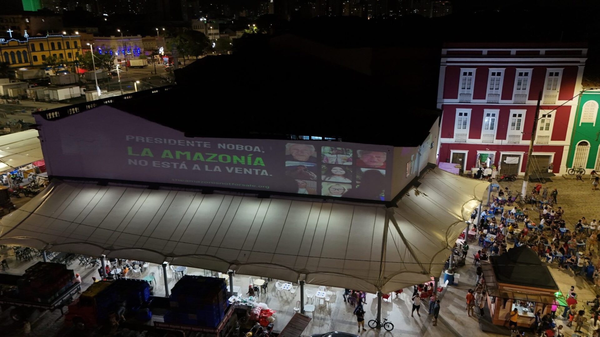 ブラジル・パラー州ベレン(Belém de Pará)で開催中の気候変動枠組条約第30回締約国会議(UNFCCC COP30)に合わせ、市内の象徴的建造物を用いた夜間の映像投影が行われた。グローバルな著名人であるジェーン・フォンダ(Jane Fonda)、ハリソン・フォード(Harrison Ford)、エマ・トンプソン(Emma Thompson)、エウヘニオ・デルベス(Eugenio Derbez)、スティーブン・フライ(Stephen Fry)、シンシア・ニクソン(Cynthia Nixon)、チェルシー・ハンドラー(Chelsea Handler)、リリー・トムリン(Lily Tomlin)らは、エクアドル政府に向けてビデオメッセージを送った。そのメッセージでは、「ノボア大統領、アマゾンは売り物ではない」と呼びかけられている。
