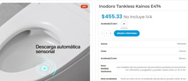 ラジオ・ピチンチャ(Radio Pichincha)は、国内の著名な企業において最も高価な便器が455米ドルであることを確認した。このモデルはセンサー式洗浄機能を備えており、レバーを下げたりボタンを押したりする必要はない。