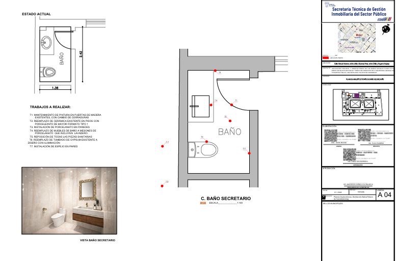 主な支出は、2,129.77米ドルを超える洗面台カウンターの購入および設置、床および壁のポーセラナートの更新、さらに1枚406米ドルの鏡2枚の購入・設置、ならびに422米ドルの長型便器の購入・設置によるものである。ホセ・フリオ・ネイラの新しい洗面台と便器には、合計2,551米ドルが投じられる。