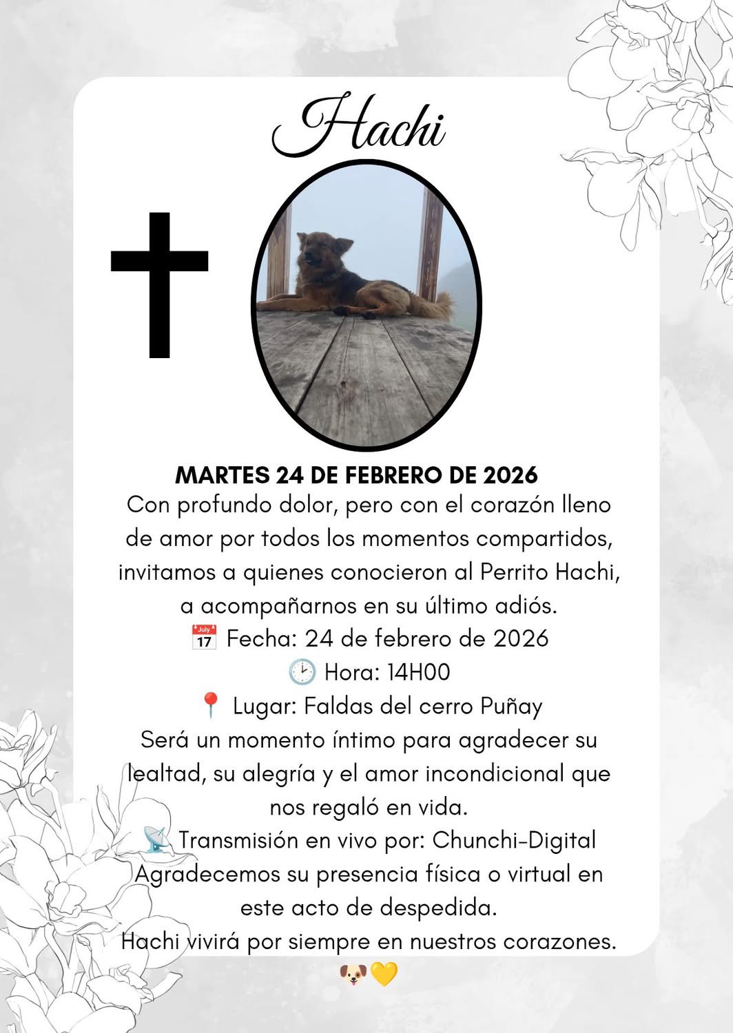 2026年2月23日(月)朝、グアノ(Guano)の地元メディアは、行方不明の少年に寄り添い続け、忠誠の象徴として知られる犬「ハチ(Jachi)」が交通事故で死去したと報じた。ハチは2025年11月、プニャイ山(Cerro Puñay)で行方不明となったルーカス・カンパーニャ(Lucas Campaña)のそばを、厳しい寒さと不安が続く山中でも決して離れず、数日間にわたり寄り添い続けたことで広く知られる存在となった。当時、地域住民や救助隊、当局が動員された大規模な捜索活動が展開され、4日間行方不明だった少年は無事に発見されたが、ハチが示した変わらぬ忠誠心は多くの人々の心を打ち、国内外で大きな反響を呼んだ(詳細はこちら)。