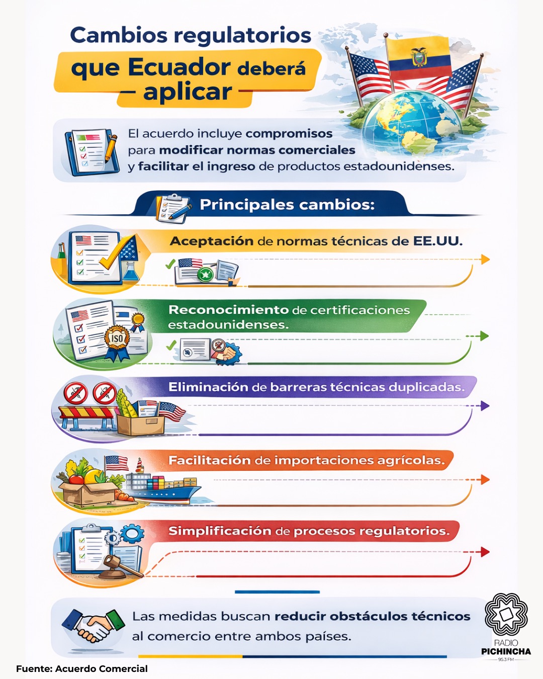 相互貿易協定(ACR)により、エクアドルは米国製品の流入に対応する規制改正を求められている。農産品だけでなく、産業・医療分野にも影響が及ぶ見込みである。