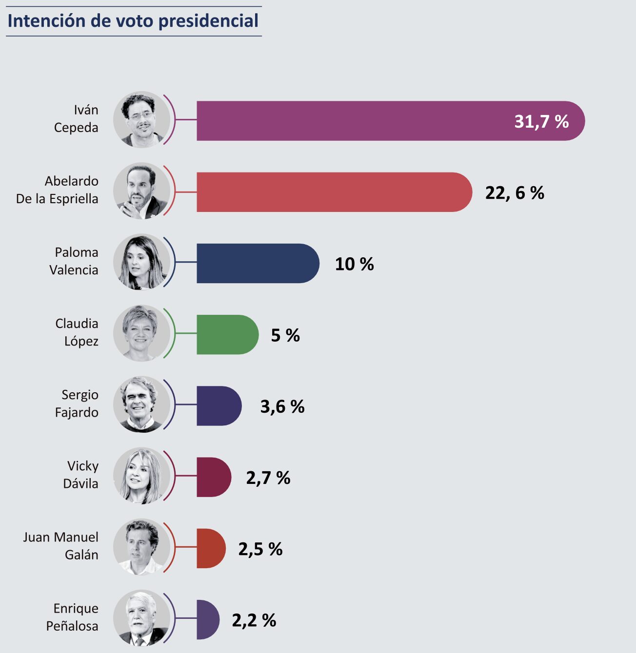 2. CEPEDA, 31,7 %; ABELARDO, 22,6 %;PALOMA, 10 %; CLAUDIA, 5 % Y FAJARDO, 3,6 %: NUEVA ENCUESTA DE GUARUMO