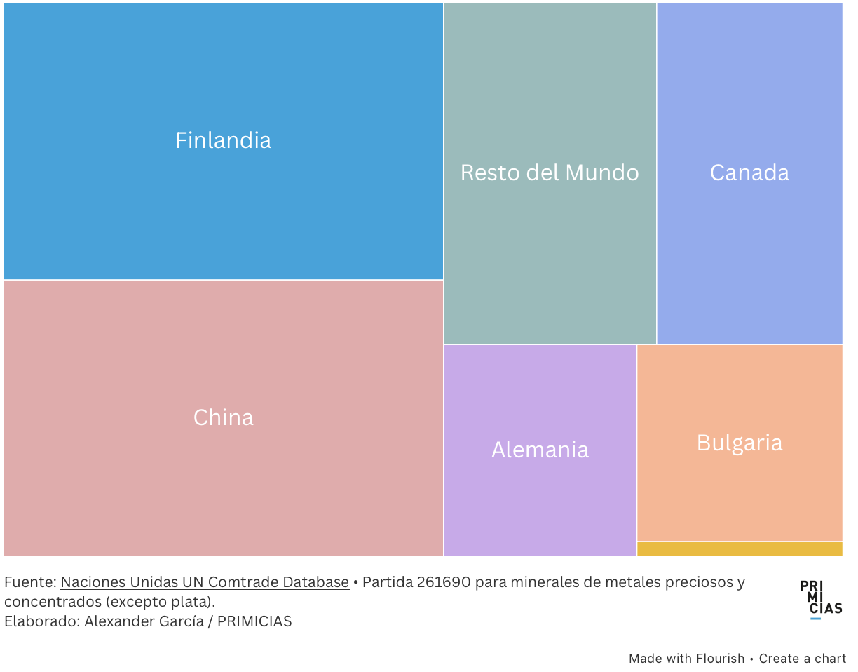 2021年から2024年までのエクアドルの金鉱石濃縮物の輸出先国(輸出量別、USD)