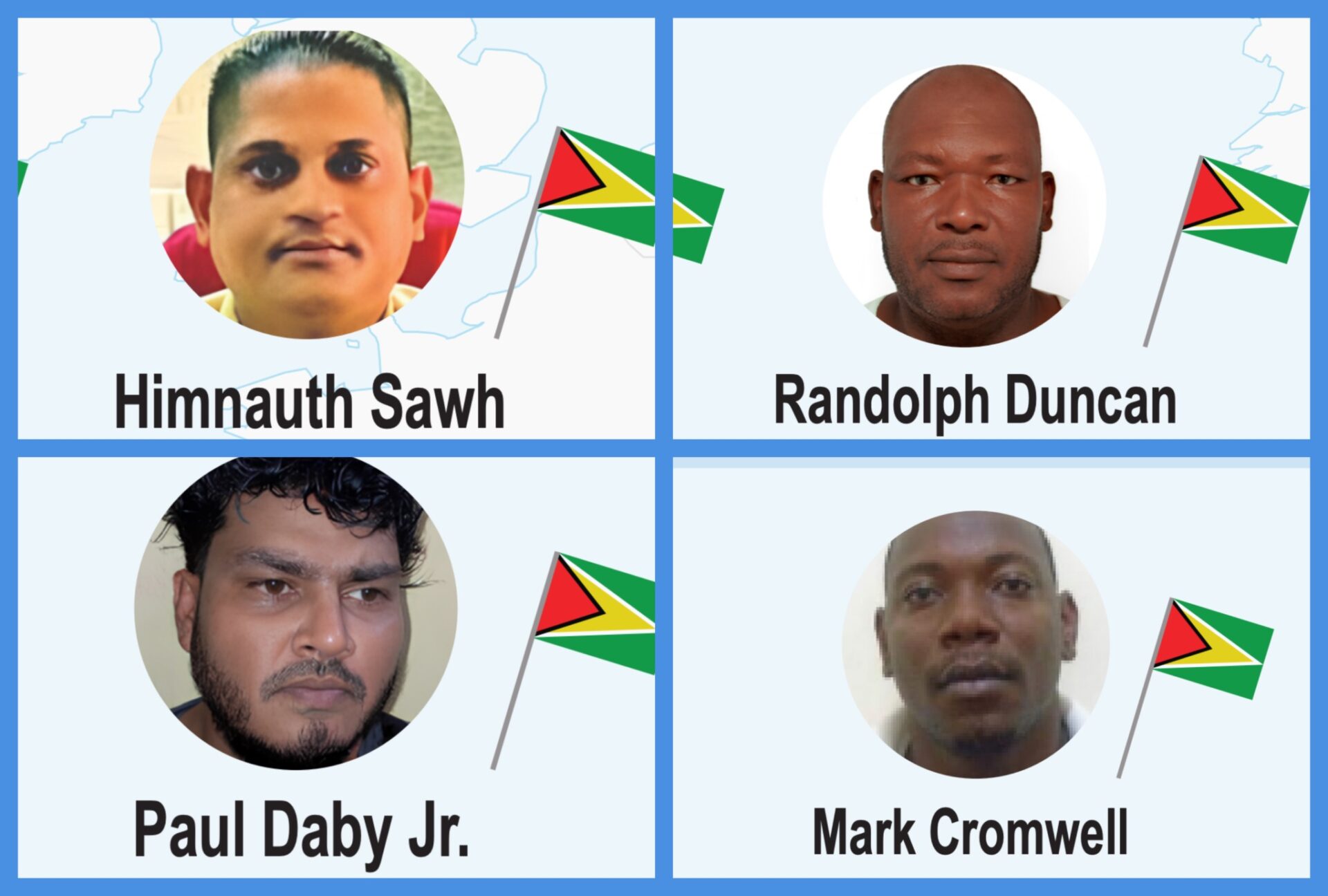 制裁対象者には、ガイアナ警察の上級監督官 ヒムナウス・サウ(Himnauth Sawh)、実業家 ポール・ダビー・ジュニア(Paul Daby Jr.)、ブクストン(Buxton)出身のデーモンことマーク・クロムウェル(Mark Cromwell)、ルドルフ・ダンカンことランドルフ・ダンカン(Randolph Duncan)が含まれる。米国財務省外国資産管理局(Office of Foreign Assets Control:OFAC)は、ガイアナが数十年にわたり南米から米国やヨーロッパへの麻薬輸送の中継地点となってきたことを指摘している。