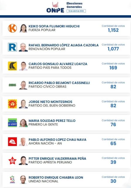 3. Resultados de las elecciones presidenciales de Perú 2026, en vivo: avanza lento el escrutinio tras compleja jornada electoral