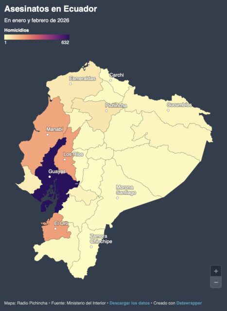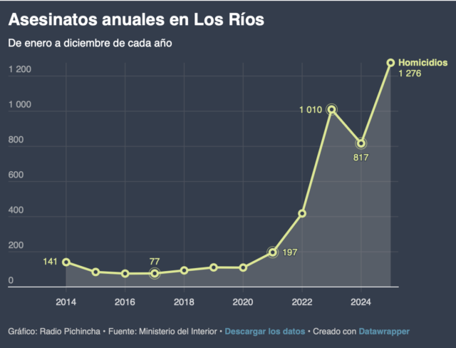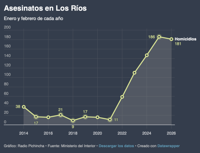 ロス・リオス県(Los Ríos)では2026年年初2か月間で181件の殺人が記録されている。これは単純計算で1日あたり約3人が殺害されている水準である。