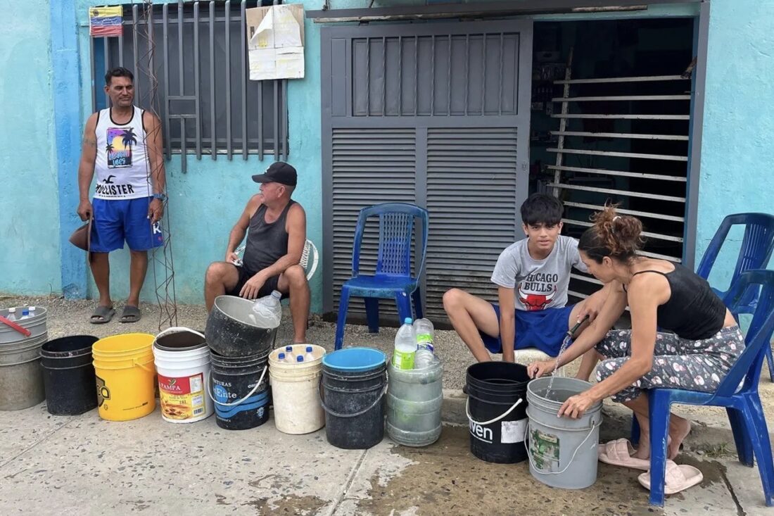 クマナ(Cumaná)の街中では、2人の男性、2人の女性、少年が水を求めて列を作っていた。住民は空のバケツを並べ、プラスチック椅子に座る者も立って待つ者もいる。一部のバケツには水を入れるのを待つペットボトルが入っていた。クマナでは料理用ガスと同様に、水も長期にわたって不足している。州政府は先月の地震で損傷したパイプラインが原因と説明するが、地元住民は長年の投資不足により供給が以前から不安定だったと訴えている。ある住民は、ごみの散乱する小川から水を汲んでいると語った。