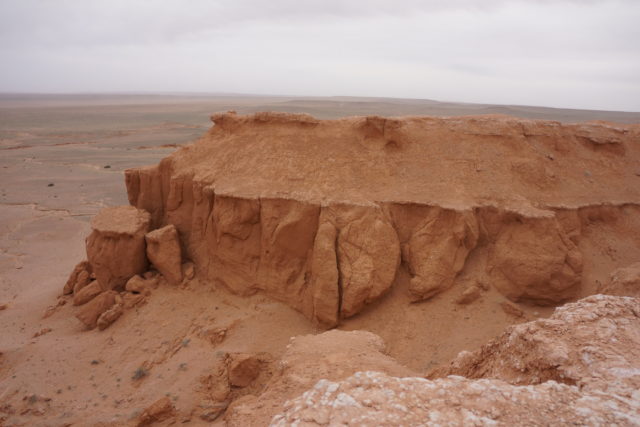 We drove almost 170 kilometers to the Khongor Sand Dunes. On the way, we stopped to see the Flaming Cliffs, a site famous for the fossilized remains of dinosaur eggs. In 1922, American paleontologist Roy Chapman Andrews discovered evidence that dinosaurs once lived here. Since then, many other important scientific discoveries have been made in this area. Around 60 types of dinosaurs are believed to have lived here, making Mongolia the second most significant country for dinosaur finds, after the United States.