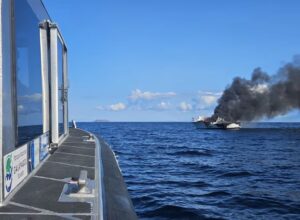 (Photo:SNS) エクアドル沖のガラパゴス諸島(Islas Galápagos)付近で観光船が火災を起こし、乗客と…